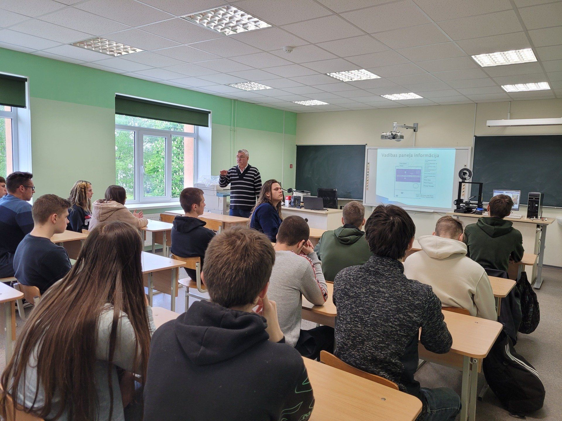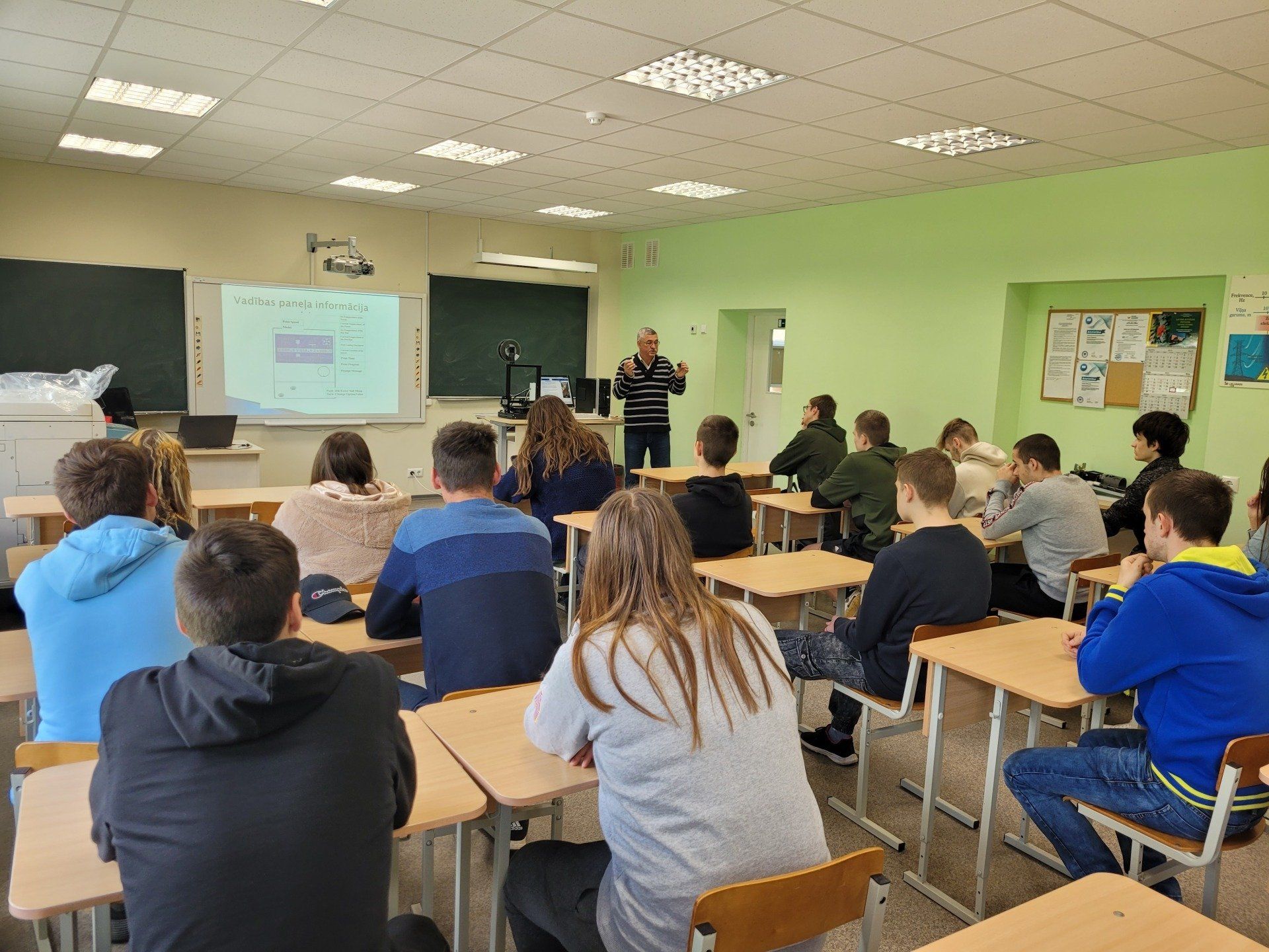 Latvijas aizsardzības stiprināšanai un veicināšanai, skolā viesos Aizsardzības ministrijas pārstāvis.