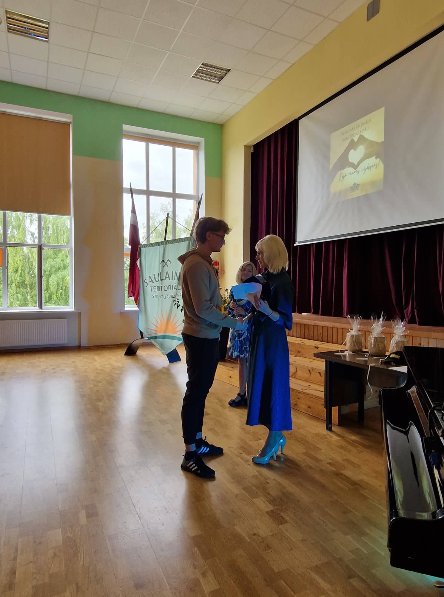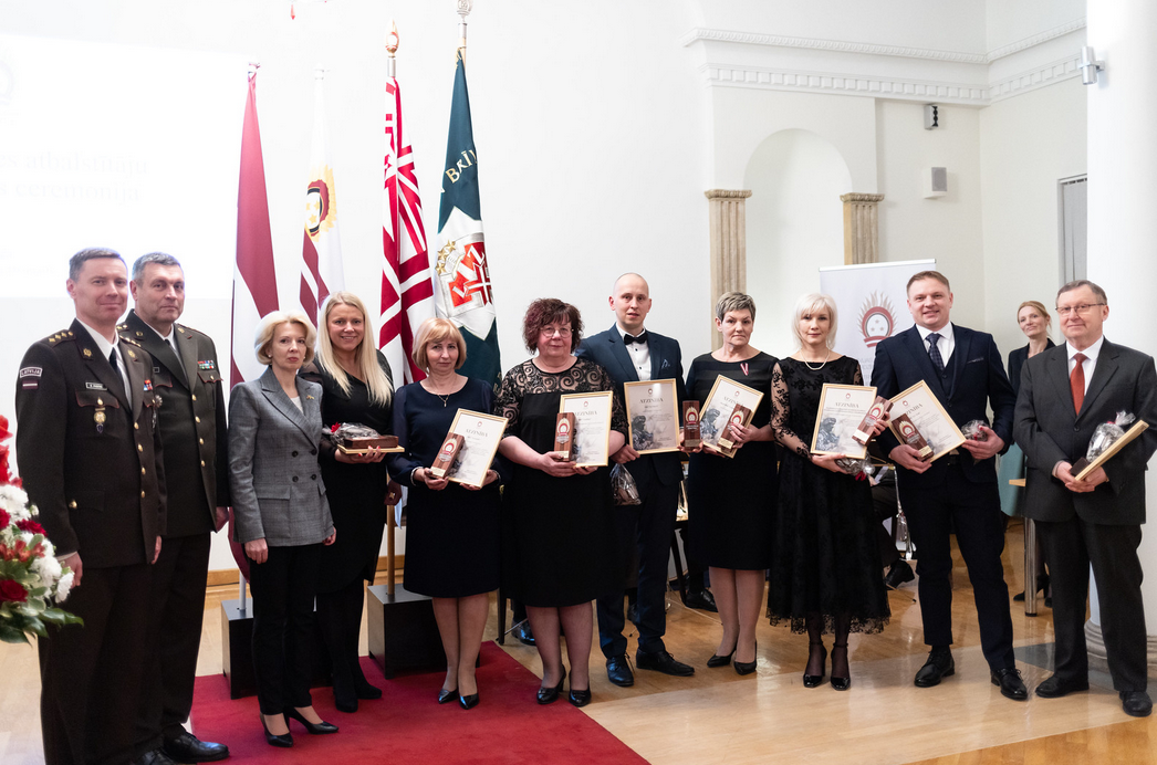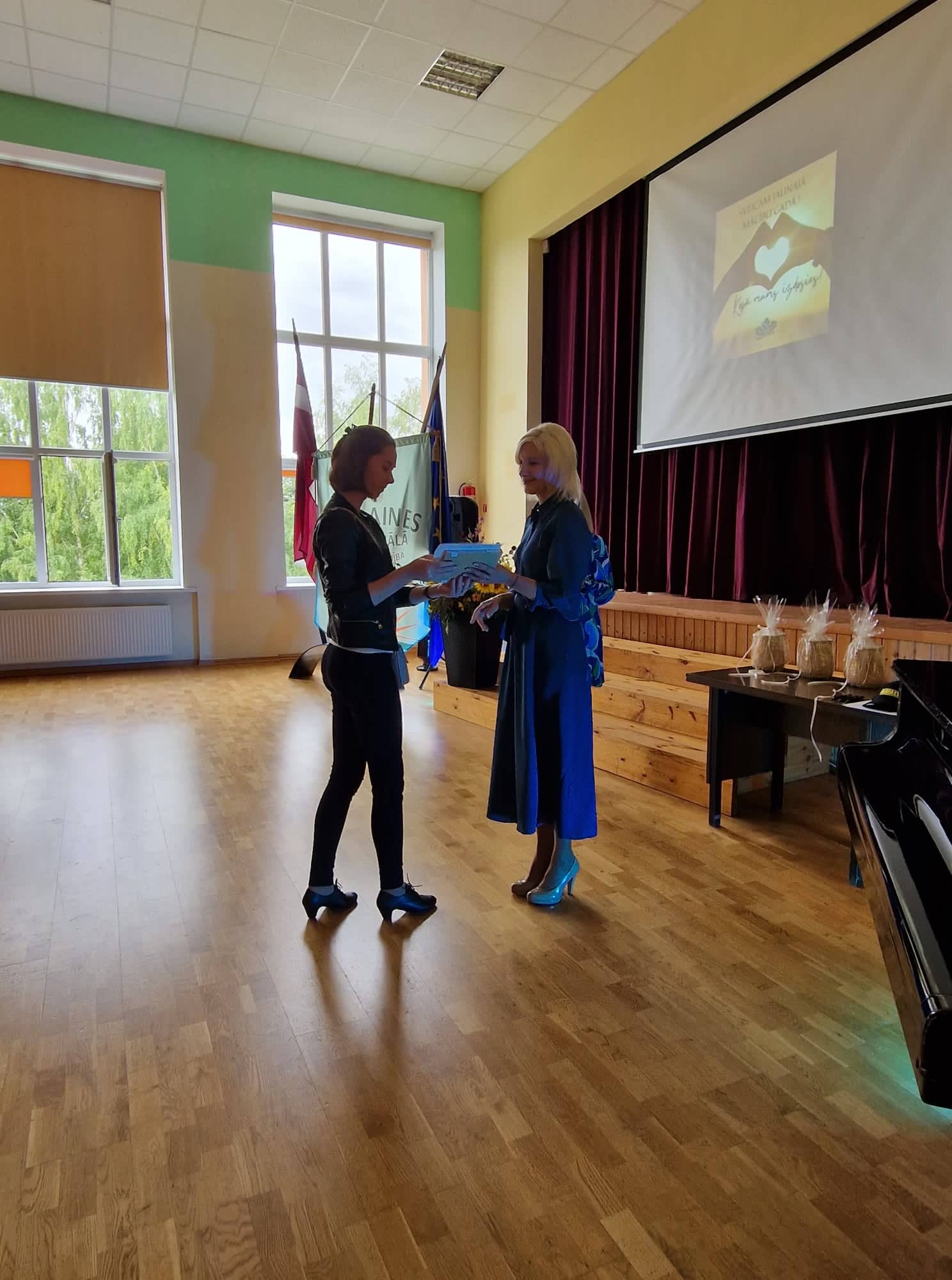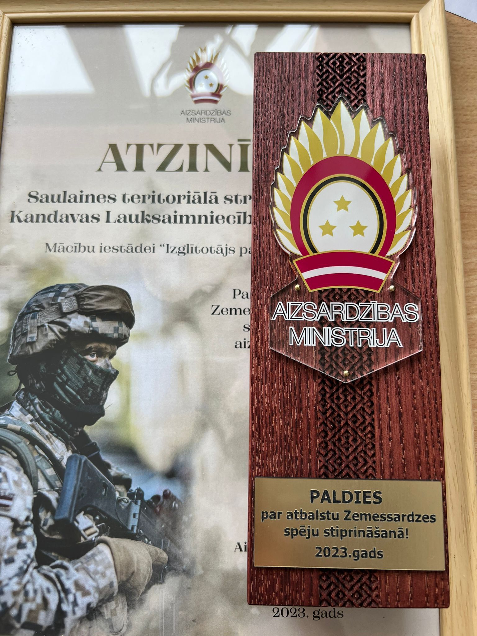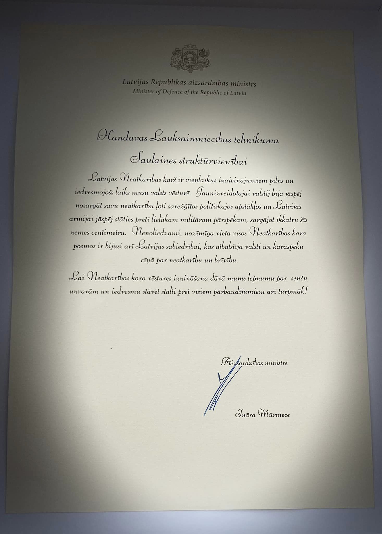 Skola saņem atzinības rakstu no Aizsardzības ministrijas.