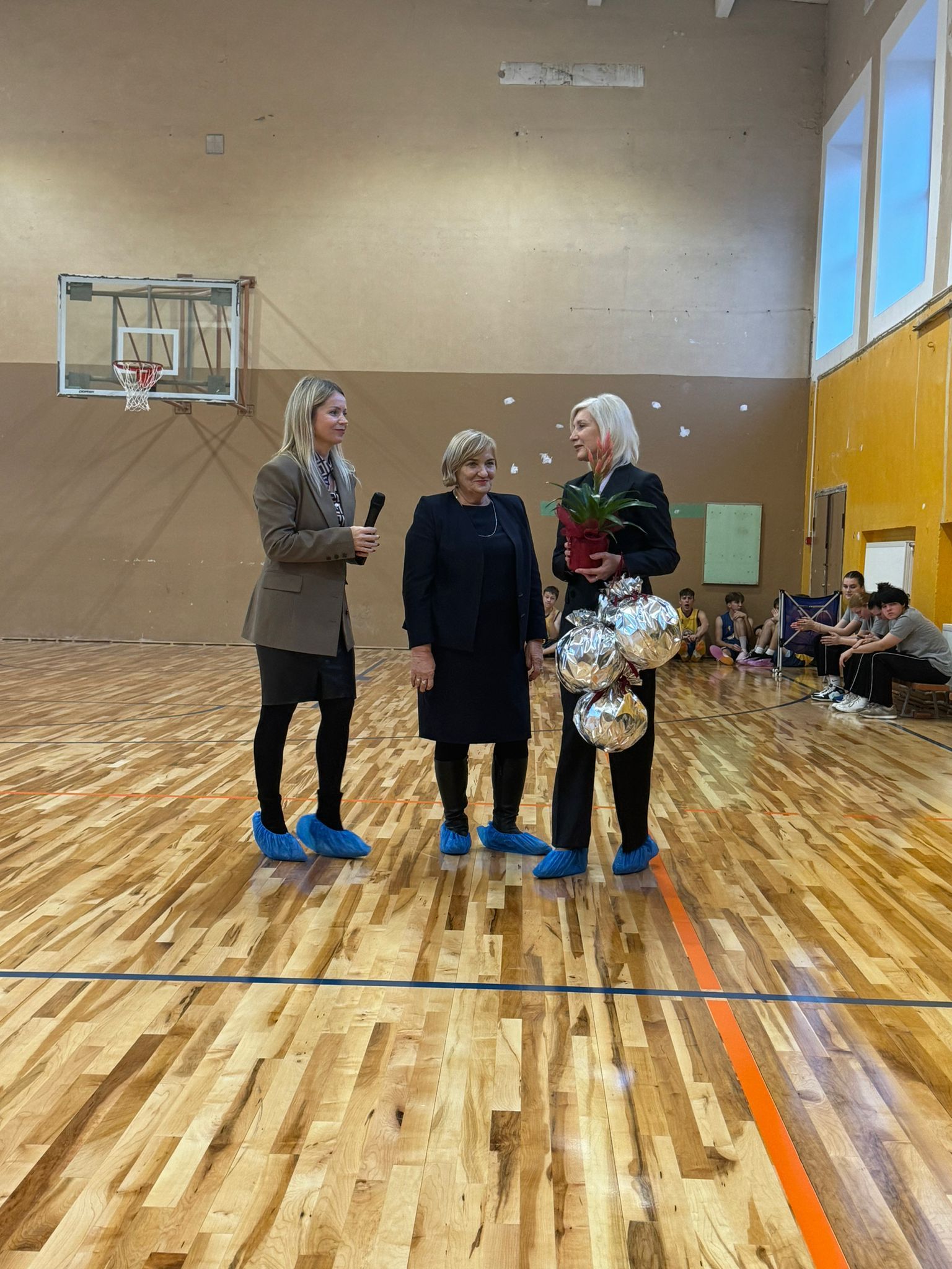 Pozitīvā gaisotnē atklāj skolas sporta zāles grīdas segumu !